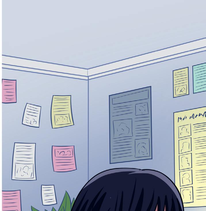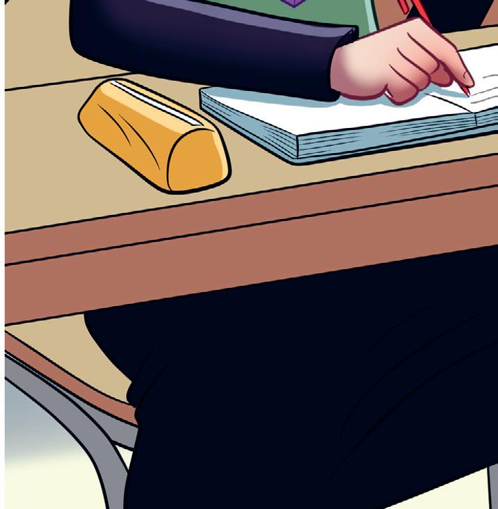 Bella sÀtter sig vid en ledig plats lÀngre bak i klassrummet. Hon plockar upp sina böcker.