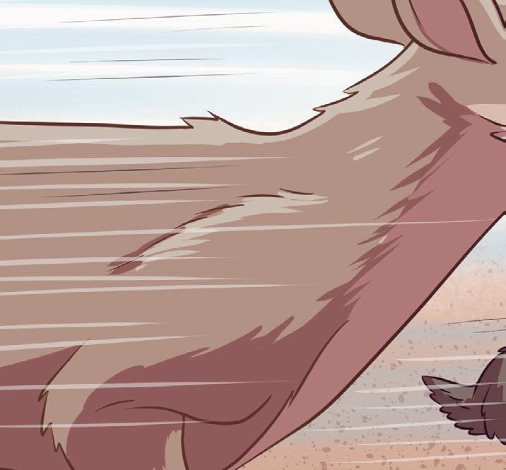 buskarna. FrÄn trÀden flyger det fÄglar. Alla pÄ skolgÄrden stannar upp och tittar pÄ djuren som snabbt kommer mot dem.