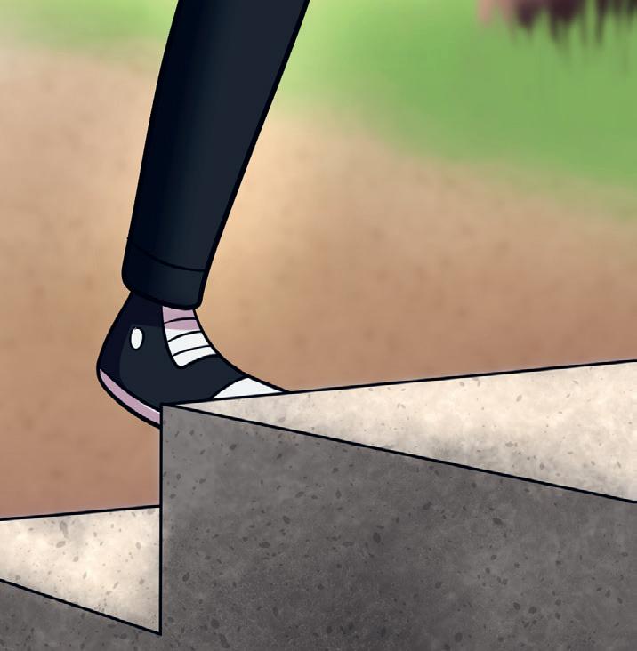 Bella skyndar sig över skolgÄrden till Superskolan.