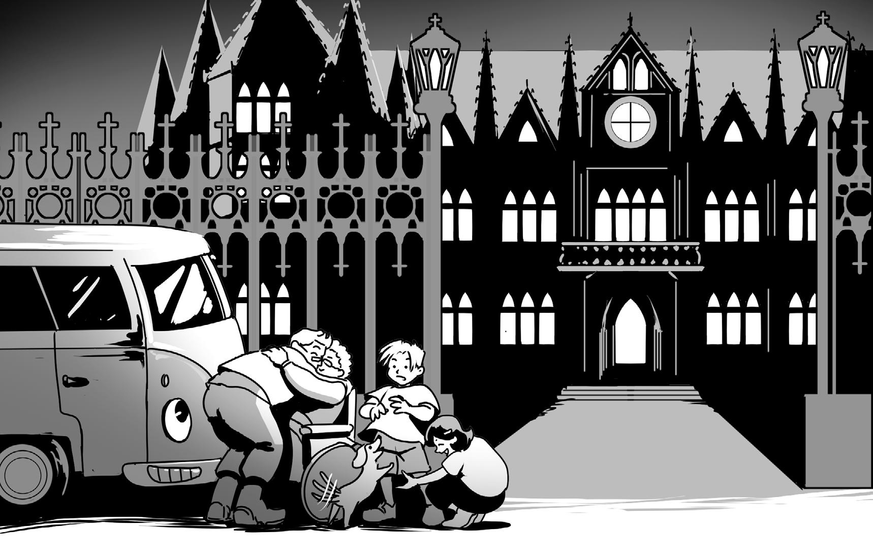 Farmor tog hissen. Sedan följde hon dem till rummet genom husets långa korridorer.
