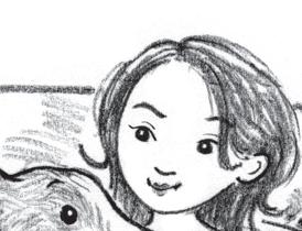Jag ser pÄ min hund. Stickan verkar ha blivit trött. Han hÀmtar sin !lt och hoppar upp i soffan. Han lÀgger sig intill mig och trycker nosen mot min hand.