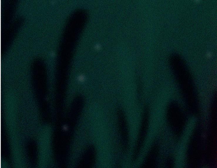 Bakom mannen syns långa linor med något som ser ut som glasbitar. De är stora och alldeles genomskinliga. Skärvorna har olika färger: röd, blå, grön, gul och knallrosa. Det måste vara bitar av glasfisk.