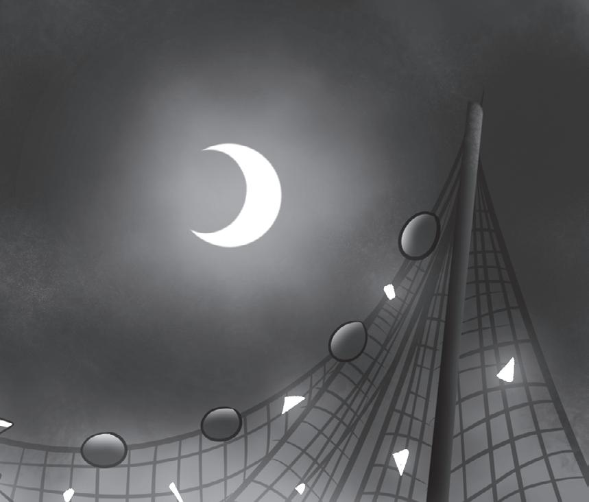 Mamma krypkör över bryggan, billyktorna sveper över fiskebåtar och nät.