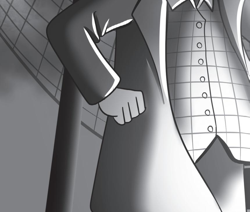 Dörren slås upp och en man i svart kostym kommer ut.