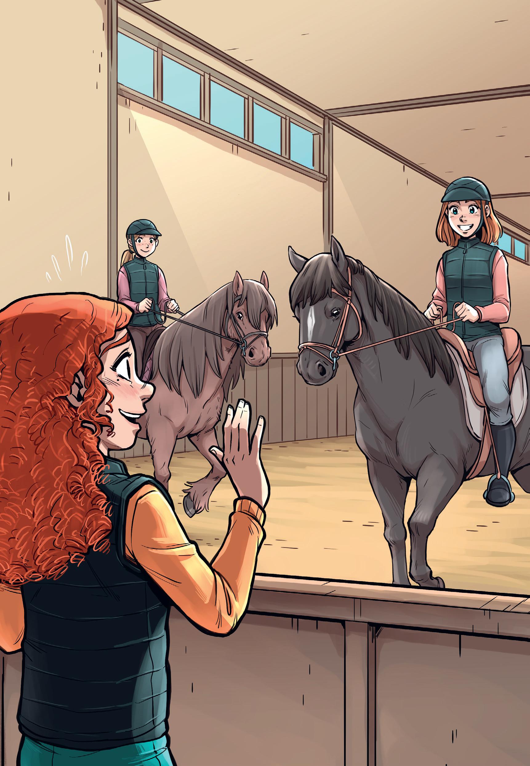 Hon ler, men känner sig inte det minsta glad. Hon älskar att vara här på Ponnyklubben. Men de har börjat ställa jobbiga frågor. Har du kvar Blue? Vill du låna en ponny? När ska du börja hoppa igen?