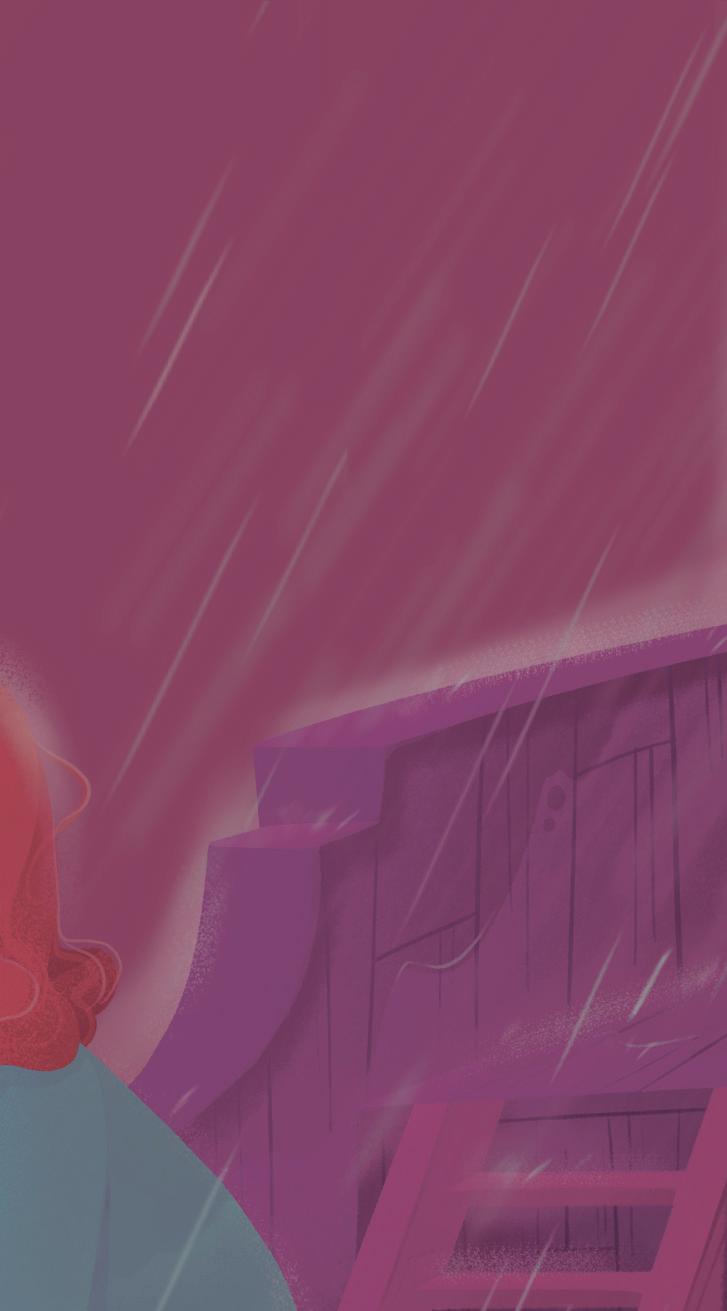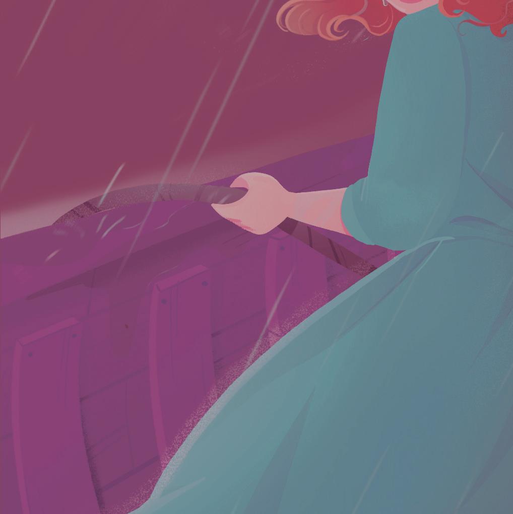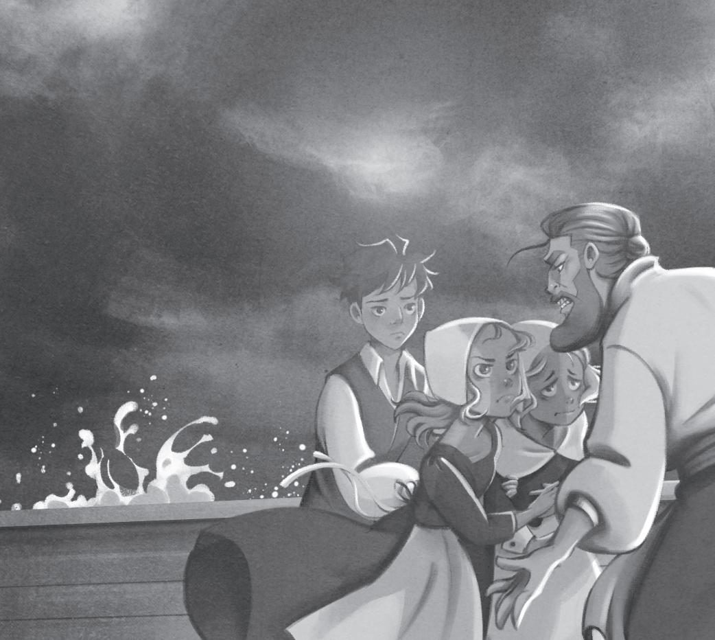 Båtresan dit blir fruktansvärd. Hårda stormar slår mot skeppet.