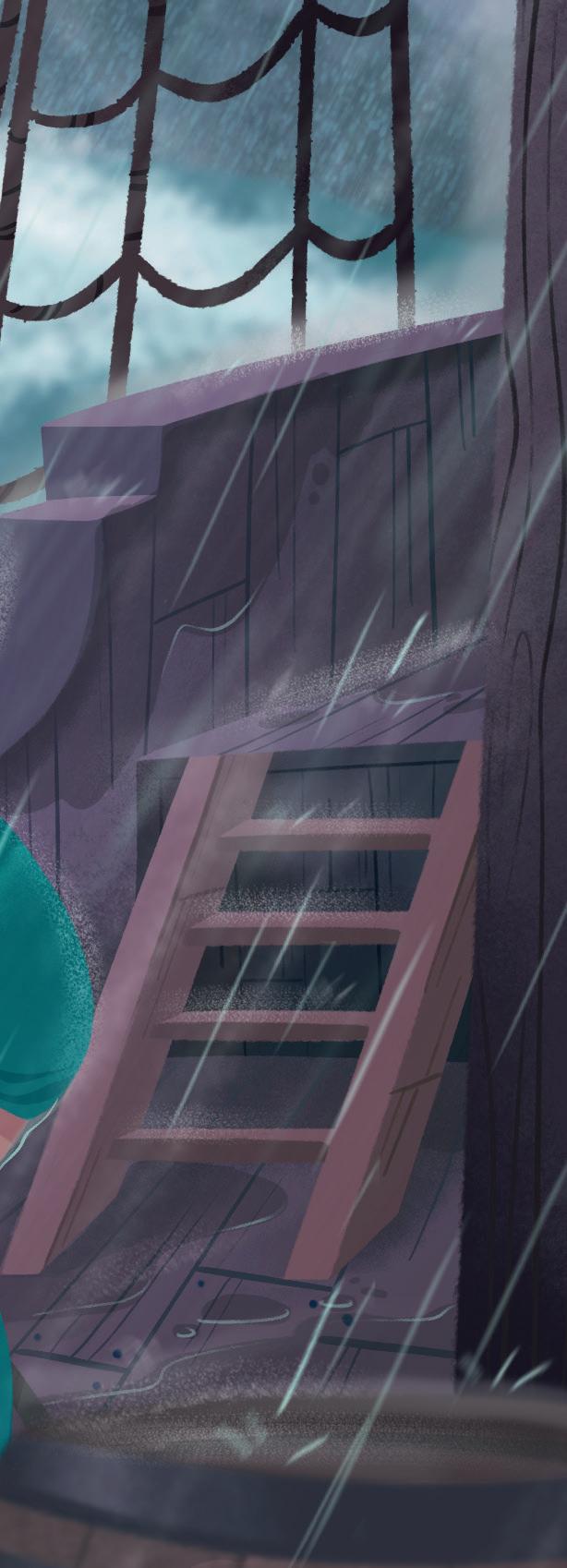 Skeppet krängde. Alla ropade och stönade. Doris var inte den enda som mådde illa. Snart luktade det kräk överallt.
