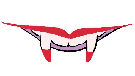 Och i mitten är det en bild på ett stort monster med blod rinnandes från mungiporna.