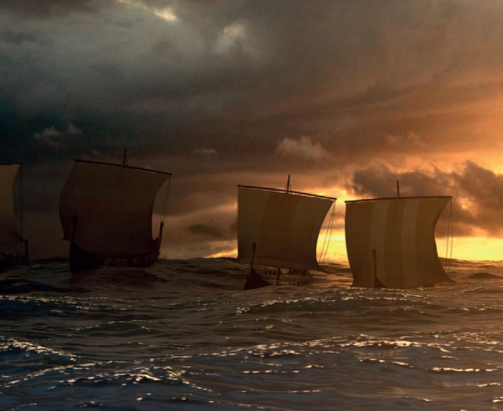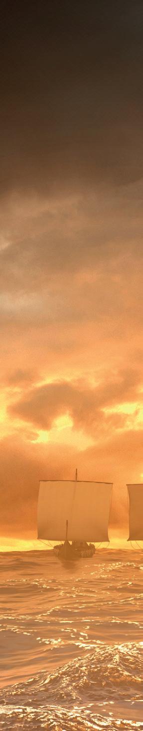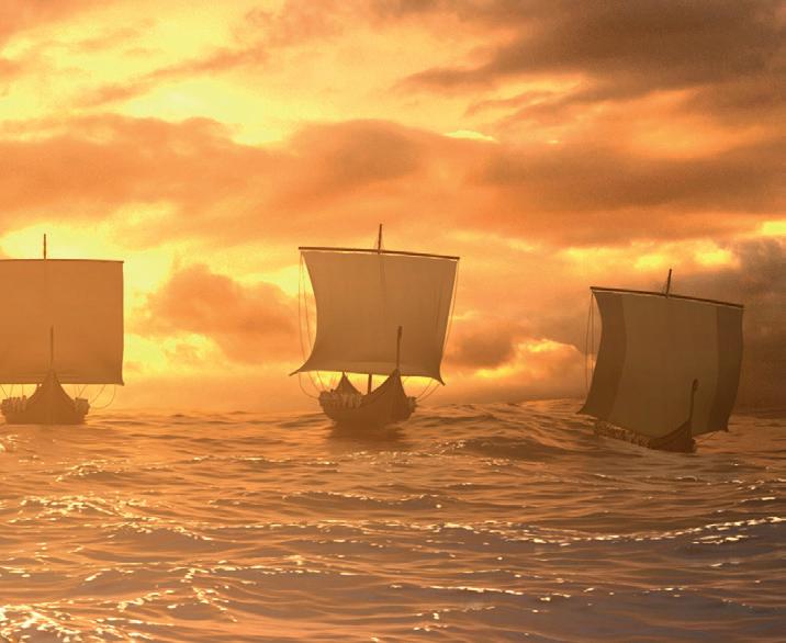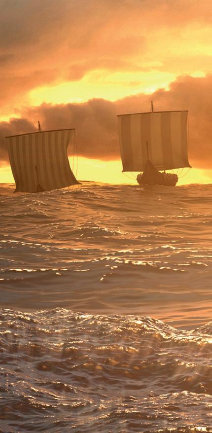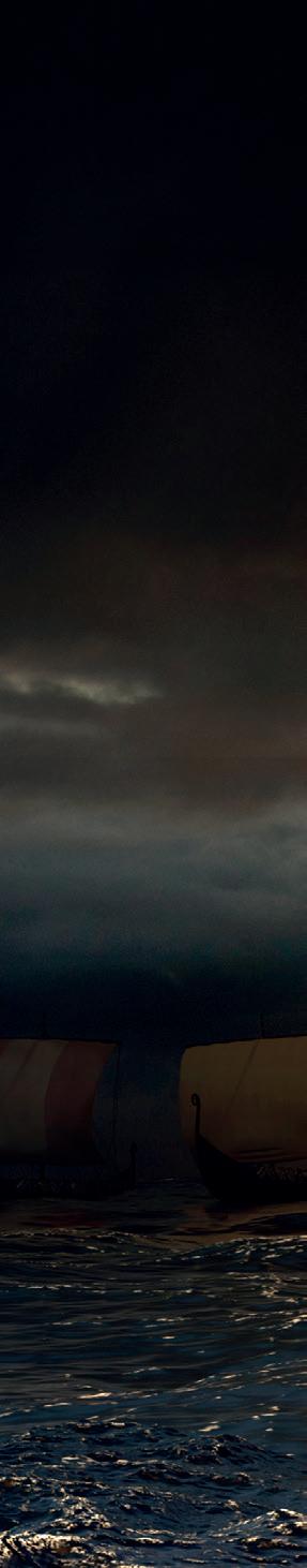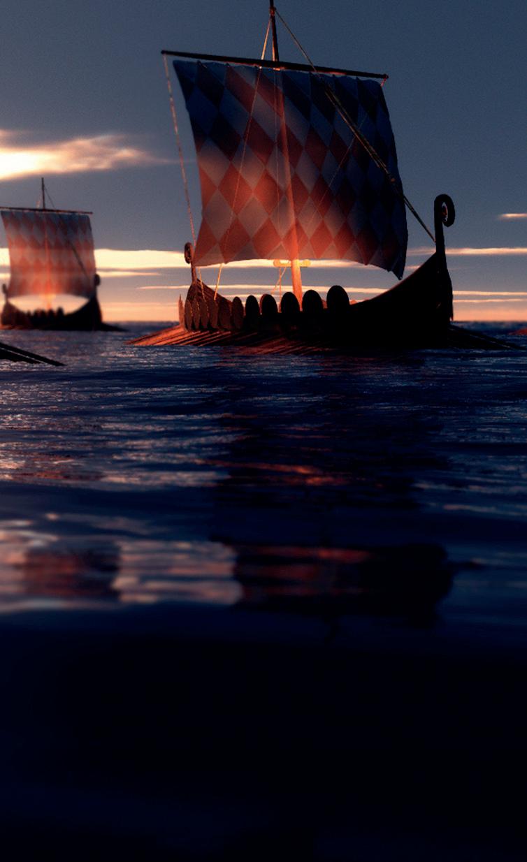 Det nns många berättelser om vikingarna. Många tror att vikingarna hade hjälmar med horn på. Det stämmer inte. Vikingarna är mest kända för att de reste runt i hela Europa för att kriga och plundra. Men de var också duktiga sjömän och höll på med handel. När de var hemma sysslade de med hantverk, jordbruk och ske.