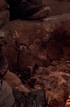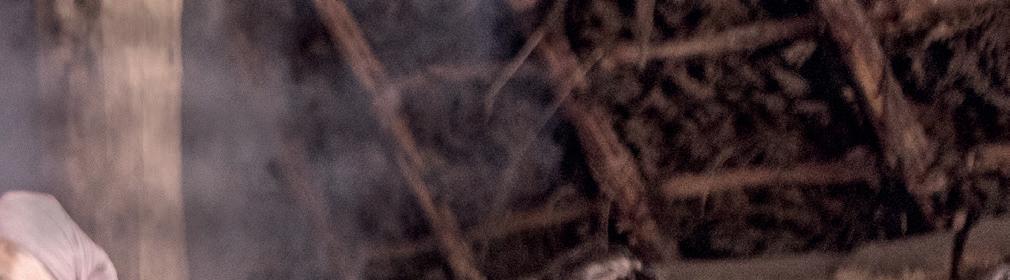 Mitt i långhuset fanns en eldstad. Elden gav ljus och värme och användes för att laga mat.