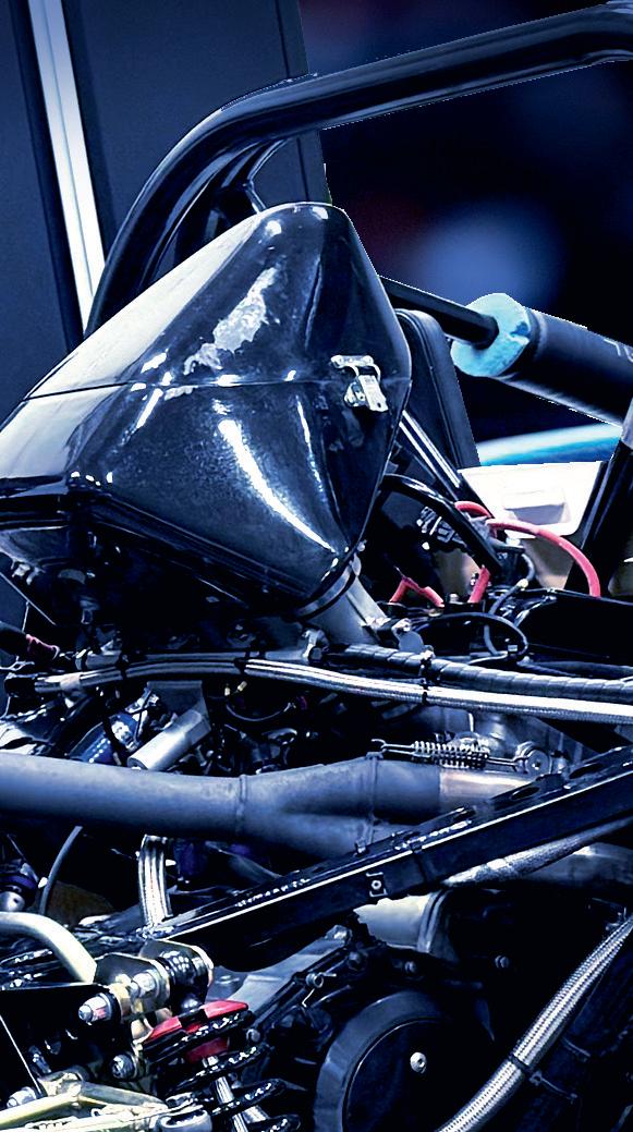på tävling, berättar Danne. I den bakre delen av trailern finns plats för tre racingbilar, däck och all utrustning man kan tänkas behöva.