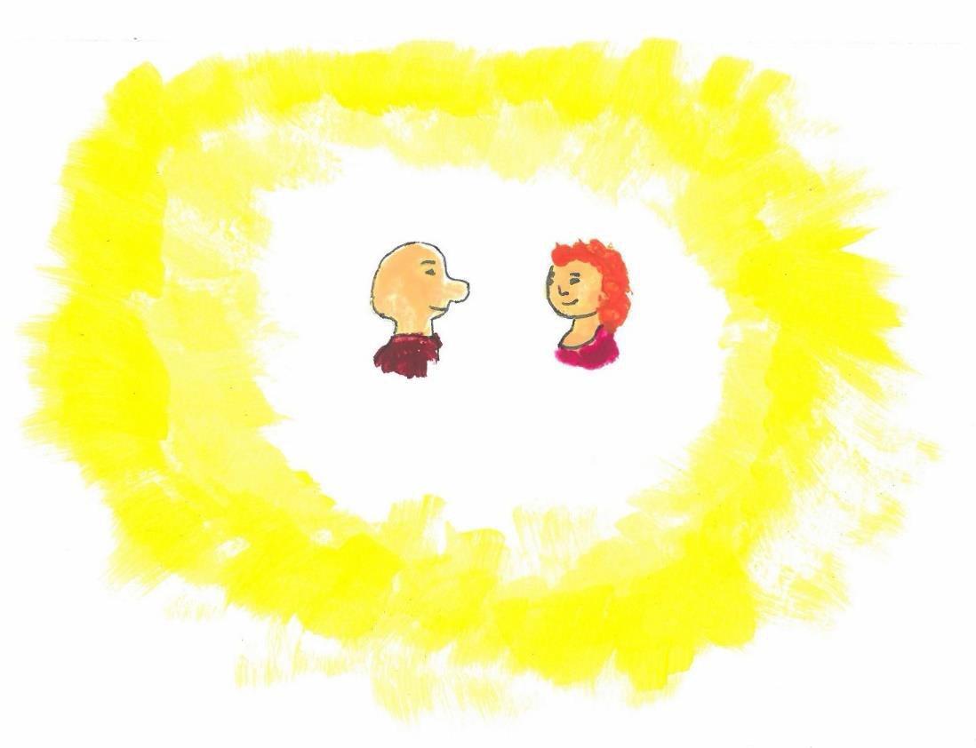 “Hej Knallen!Hittade du detgulasom fladdradei vinden?” frågar hon nyfiket.