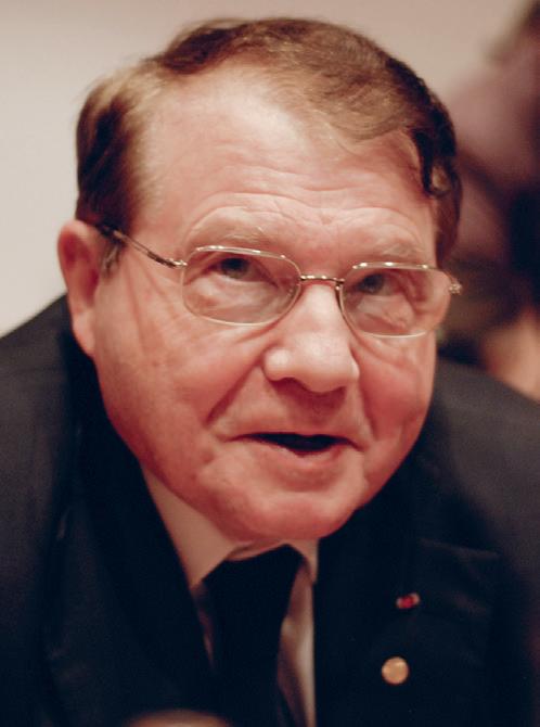Figur 2.2.2b. Luc Montagnier (1932–2022; nobelpris i medicin 2008). Upptäckte HIV tillsammans med Françoise BarréSinoussi. Efter nobelpriset ägnade han sig åt bisarr pseudoforskning Foto från en presskonferens i december 2008 i samband med nobelpriset (Wikimedia Commons).