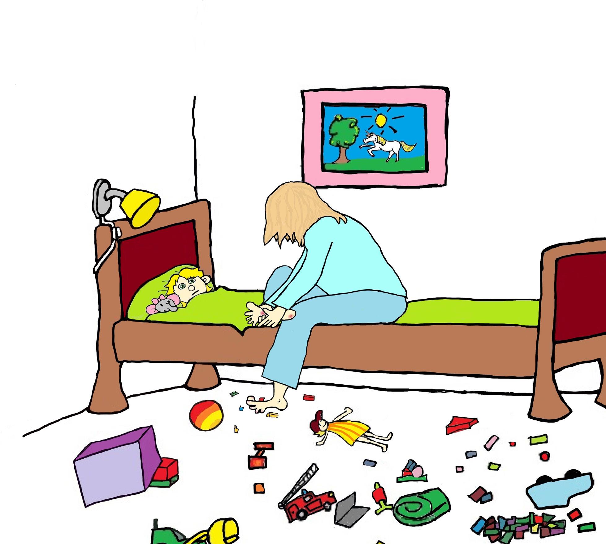 Mias lego på golvet. Nuförtiden hade Mia lättare för att stänga ute allt skrik och sova vidare. Men leksakerna hade svårare att somna om när mamma skrek så där.