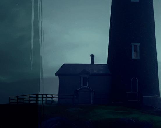 Plötslig sveper ett bländande starkt ljussken in över stranden. Hilma tvärstannar och August dunsar in i hennes rygg. Av en ren reflex tar de tag i varandras armar och kramar hårt. Båda spärrar upp ögonen och gapar. De ser ett slags glödande boll fara fram och tillbaka uppe i luften och snabbt försvinna bakom tornet.