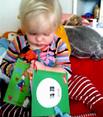 Med våra barnpocketar packas favoritböckerna enkelt med på resan. De trycks självklart i färg och går att hänga upp i den färgglada snodden.