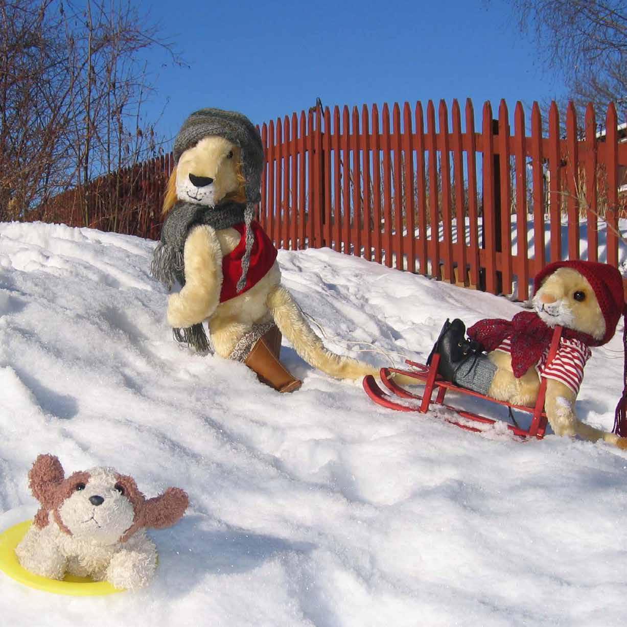 Men oj, kälken går sönder! Vad ska de göra nu?