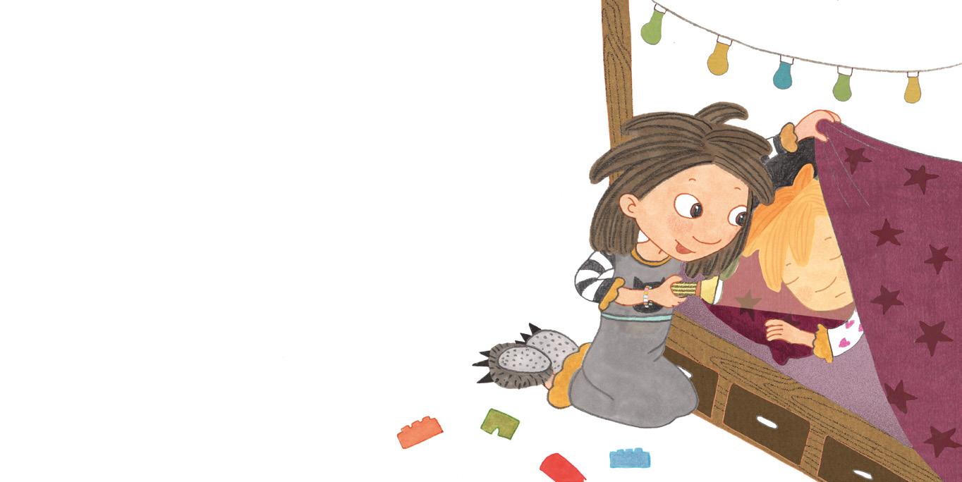 Caroline Röstlund gör både barnböcker och tidningsillustrationer. Caroline är intresserad av att skildra mångfalden av sätt att leva och vara som finns runtomkring oss. Hon har för OLIKA skildrat många olika familjeformer, hudfärger och karaktärer i sina böcker. Här tecknar Caroline med självklarhet en pojke i nattlinne med rosa hjärtan.