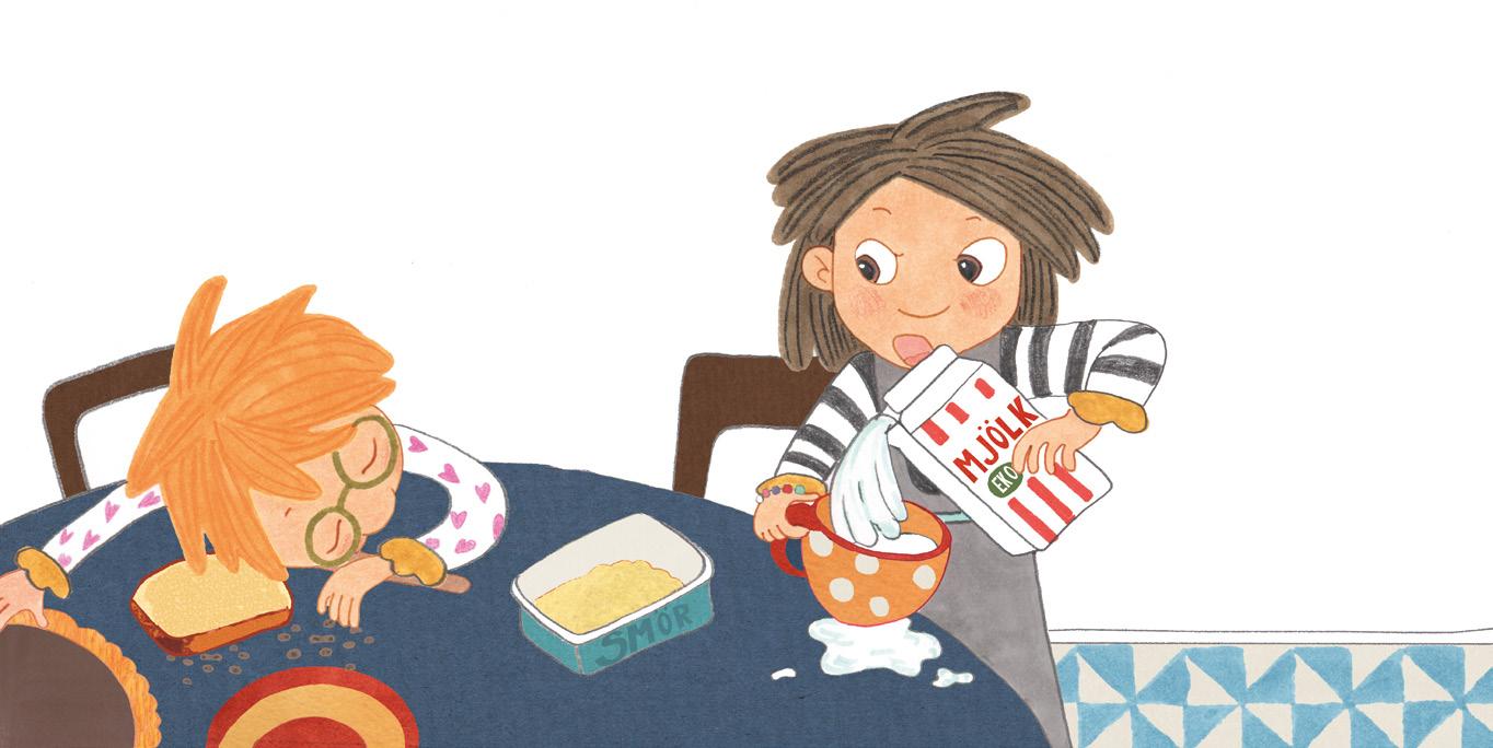 Mamma fyller år. Konrad och Hedvig ska ordna frukost.