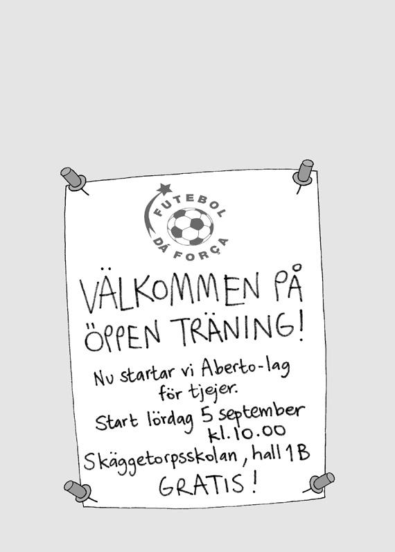 “Fotbollgerstyrka.Detfattade jagnärjagvar14årgammalochtränadeettfotbollslag hemmaiSverige.Jagsåghurfotbollenochmittledarskapfickdem attväxa,taplatsochståuppförsigsjälvaochförvarandra.Ja,jagsåghur fotbollkanförändravärlden!NågraårsenareflyttadejagtillMoçambique, jagisödraAfrika,ochbörjadetränatjejerifotbolldärmed.Ochdetvardåsom startadeorganisationenFuteboldáforça.Detbetyder“fotbollgerstyrka”på portugisiska(somdepratariMoçambique).NufinnsFuteboldáforçaiMoçambique, Sverigeochfleraandraländerruntomivärlden,förattallatjejersomvillskafå spelafotboll,hakulochblistarkamänniskorsomtrorpåsigsjälvaochpåandra. ISverigeharFuteboldáforçaävenspeciellaträningstidersomheterFutebol fantastiskAberto,“öppenfotboll”.Ditkantjejerkommaochspelafotbollmeden Futeboldáforça-tränare.Ochditkanallakomma,oavsettom deärnybörjareellerharspelatförr.Välkommen,dumed!”