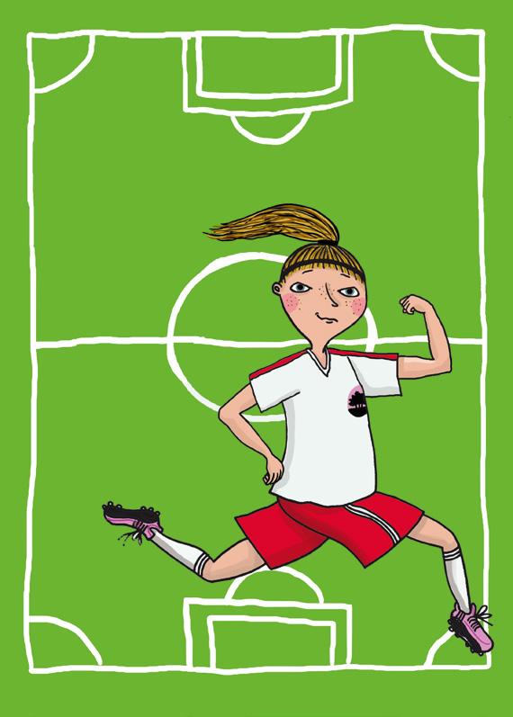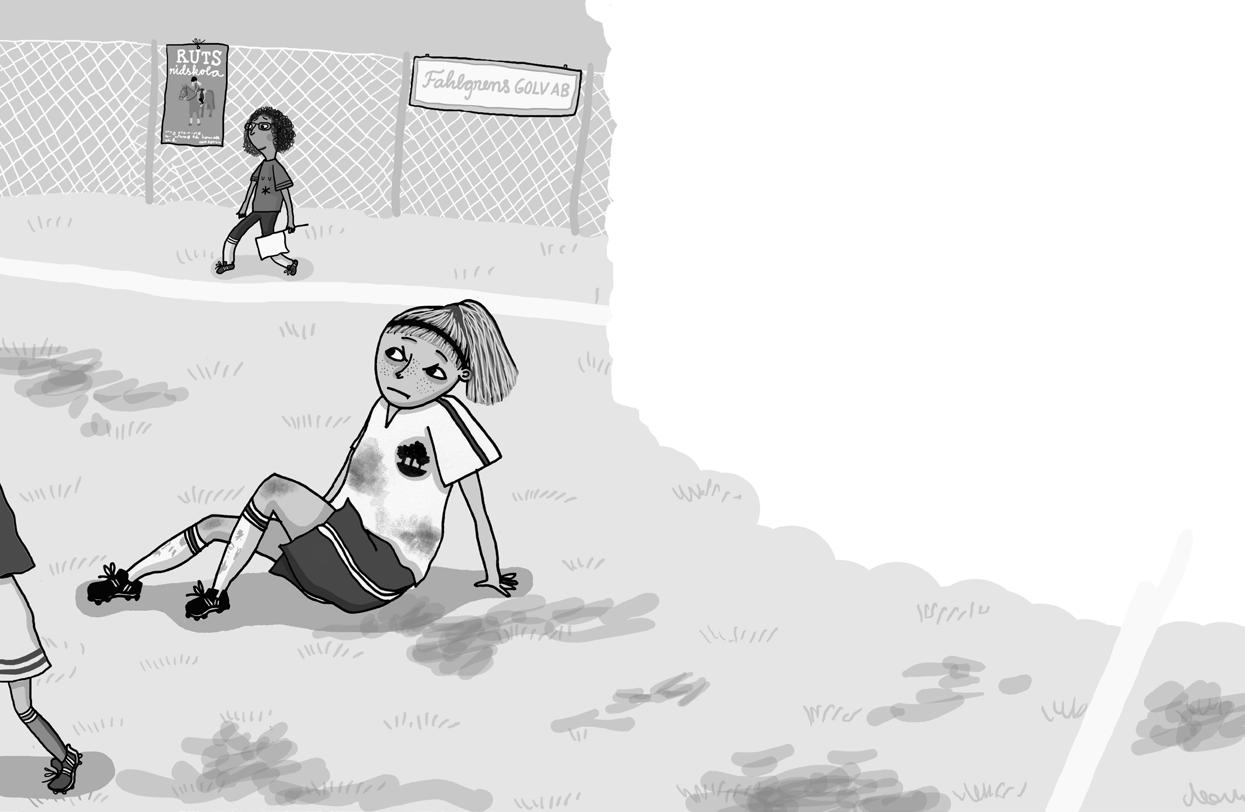 Charlotte kommer på benen, tar sig för höften. Det gör ont, men det är ingen fara. Fotboll gör ont. Hon är bara arg för att hon förlorade duellen.