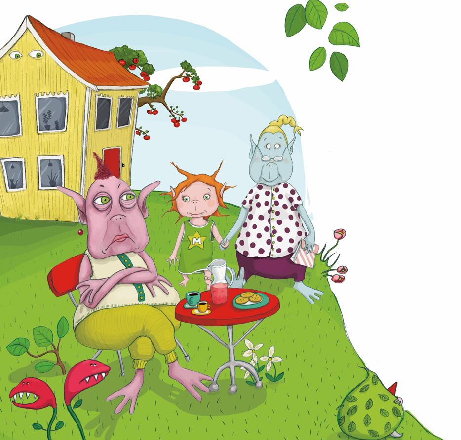 ”Ja, och så behöver du inte vara alldeles själv hos Margot!” skrattar Mira och killar morfar med ett grässtrå på näsan.
