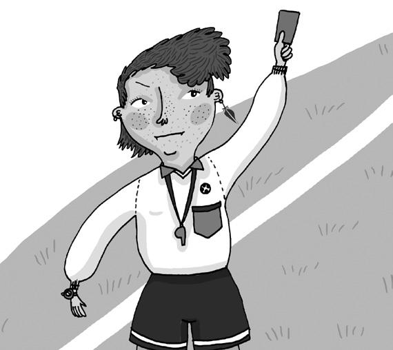 Alla stirrar, många med stora ögon och gapande munnar. Som i slow motion ser Charlotte hur domaren drar fram ett rött kort. Hon börjar protestera, och Julia kommer springande och ropar: