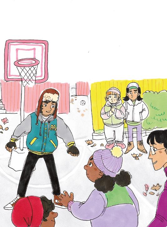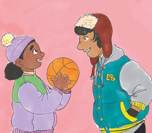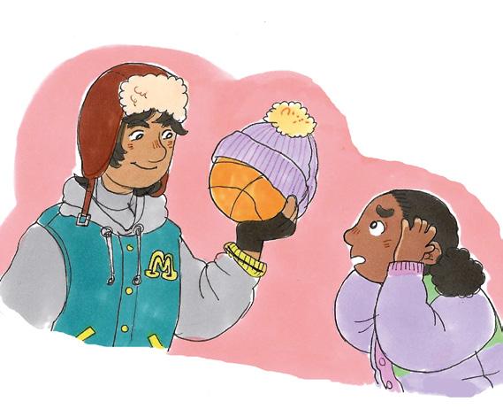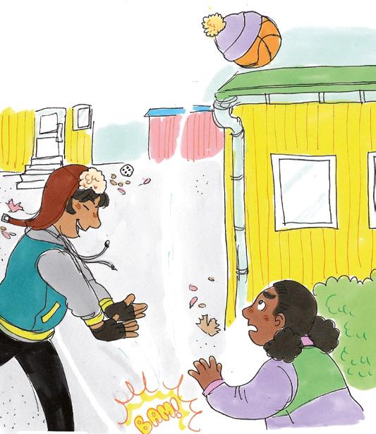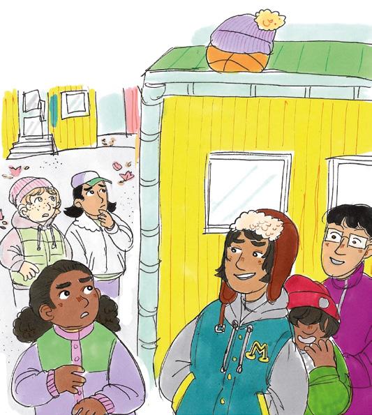 Noomi tycker om att spela basket. Men det går ju inte om bollen är på skolans tak. Hur ska hon få ner den?