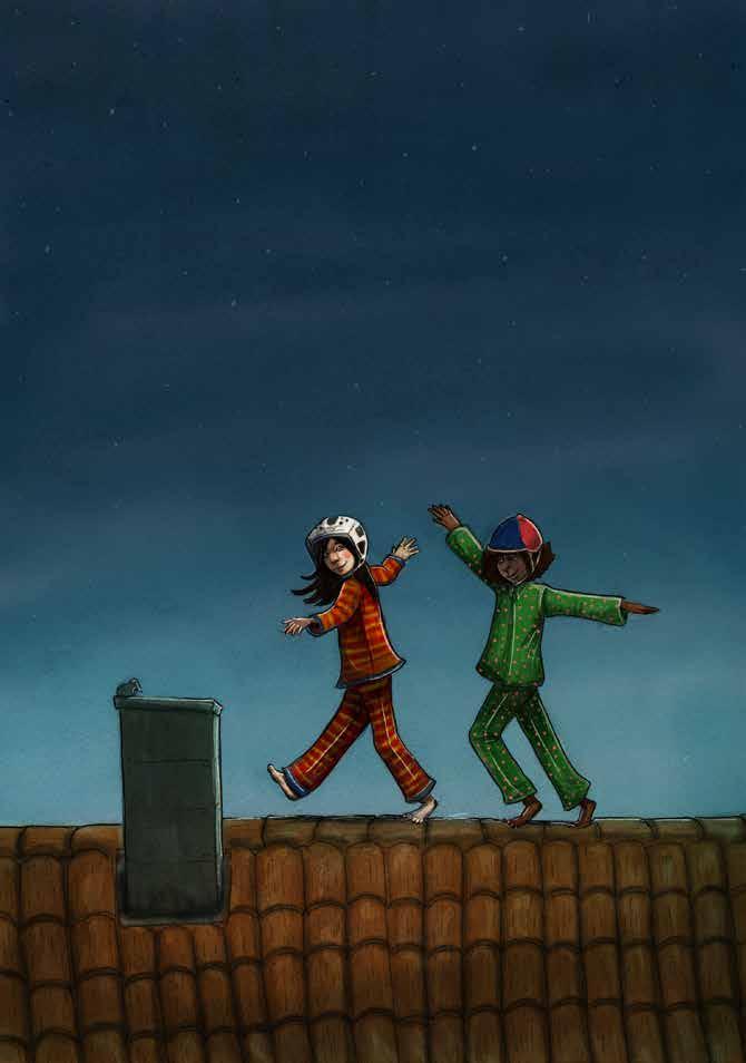 Anna Westin bor i Vallentuna med Erik, Juno, Frances och hunden Milou. Något som var extra kul med den här boken var att få fantisera fritt till en så fyndig, färgglad text. ”Kruxet var att illustrera cykeln, eftersom det har varit mitt svåraste illustrationsobjekt. Nu fick jag verkligen möjlighet att träna på det!”