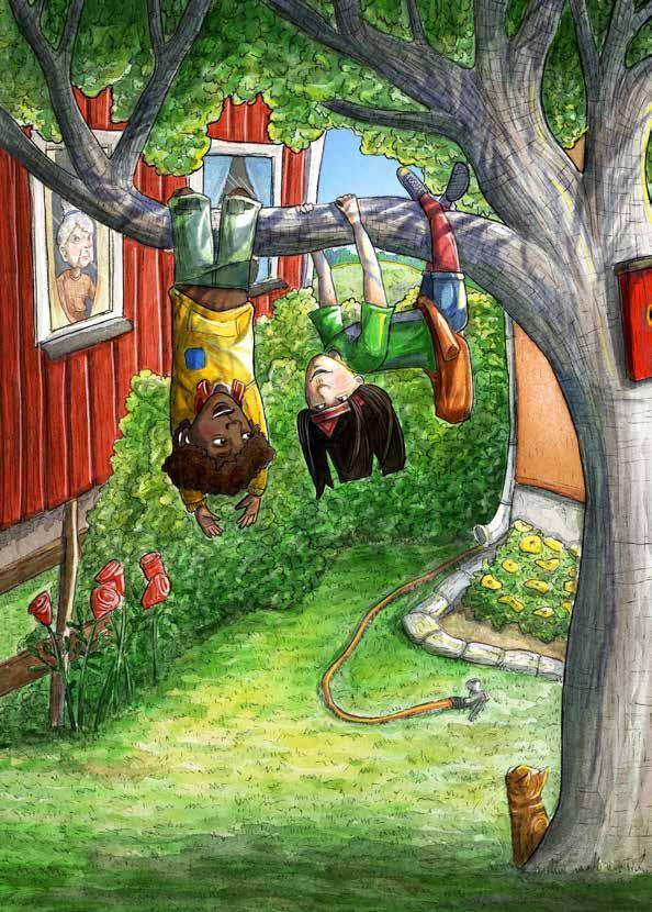 Jag tittar på Kian bredvid mig. Han ser orolig ut. Inte för att han hänger upp och ner och dinglar i ett träd. Utan för den arga rösten.