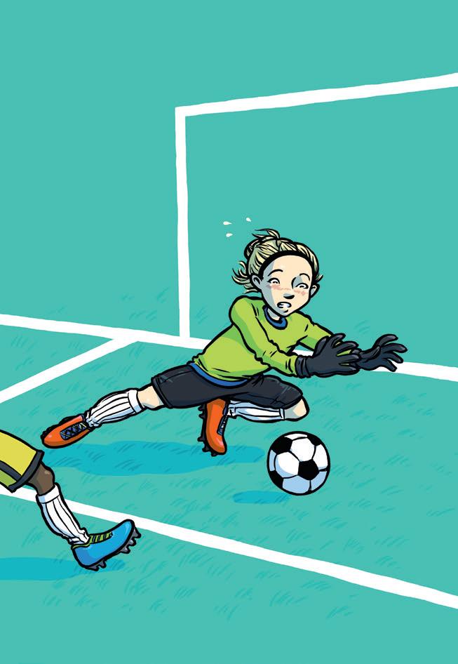 är läge dyker hon efter den, rakt framför fötterna på anfallaren och greppar bollen.