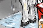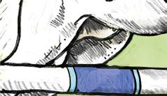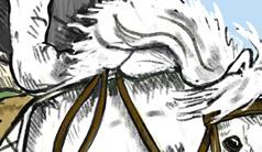 inte vända på huvudet för att bita mig. Jag börjar borsta honom. Men då försöker han kicka mig med bakhovarna. Mitt hjärta slår hårt. Men jag tänker inte ge upp. När Goliat sparkar i luften säger jag till honom med bestämd röst: