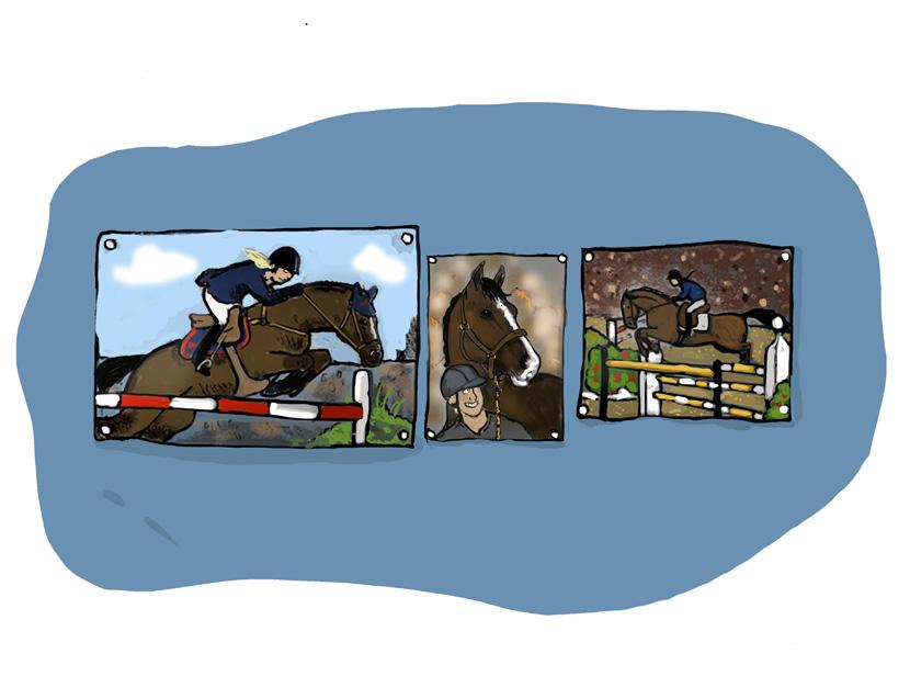 ramlade av hästen. En annan gång bröt hon benet. Men hon fortsätter med hoppningen ändå.