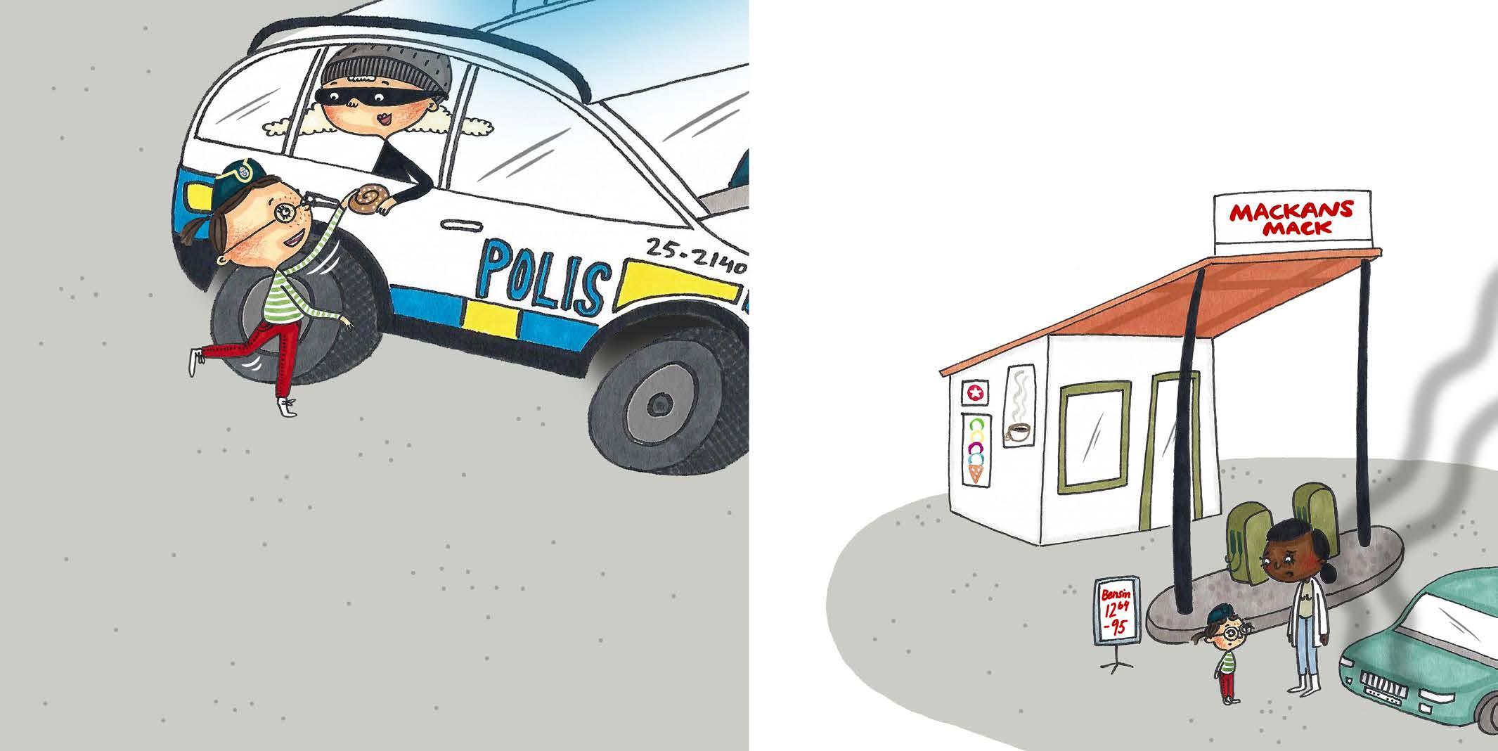 – Hoppa in bredvid tjuven så skjutsar vi dig, säger Mix och sätter igång sirenen.