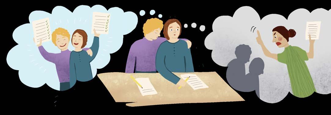 Det hade varit bråkigt hemma hela dagen och kvällen. Därför hade Noa inte kunnat läsa på till provet. Det gick helt enkelt inte. Men Noa kom till skolan ändå och bästa kompisen Alex fick höra om bråket. Alex hade hunnit plugga mycket. Provet började efter lunch. De satte sig bredvid varandra. Noa kunde svaren på de första frågorna, men sen tog det stopp. Det blev helt omöjligt att koncentrera sig. Men den sista frågan måste besvaras. Noa viskade till Alex: "Hjälp mig med sista frågan!"