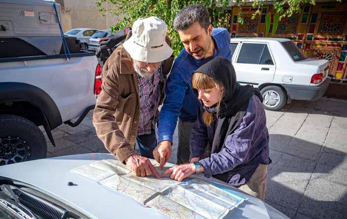 â för vi kommer att Ă„ka, vandra och klĂ€ttra sĂ„vĂ€l vertikalt som horisontellt. UtgĂ„ngspunkter pĂ„ kartan Ă€r stĂ€der med sĂ€llsamma namn som Semirom, Lordegan, Borojen och Shalamzar. Fast i praktiken tvingas vi för det mesta hĂ„lla tillgodo med strikt numeriska, andefattiga satellitpositionsangivelser i det imponerande men inte sĂ€llan namnlösa landskapet.