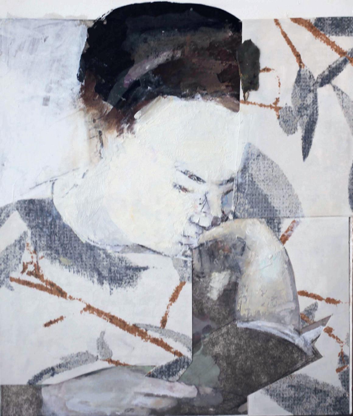 Collage på kartongtryck, 23 x 27 cm