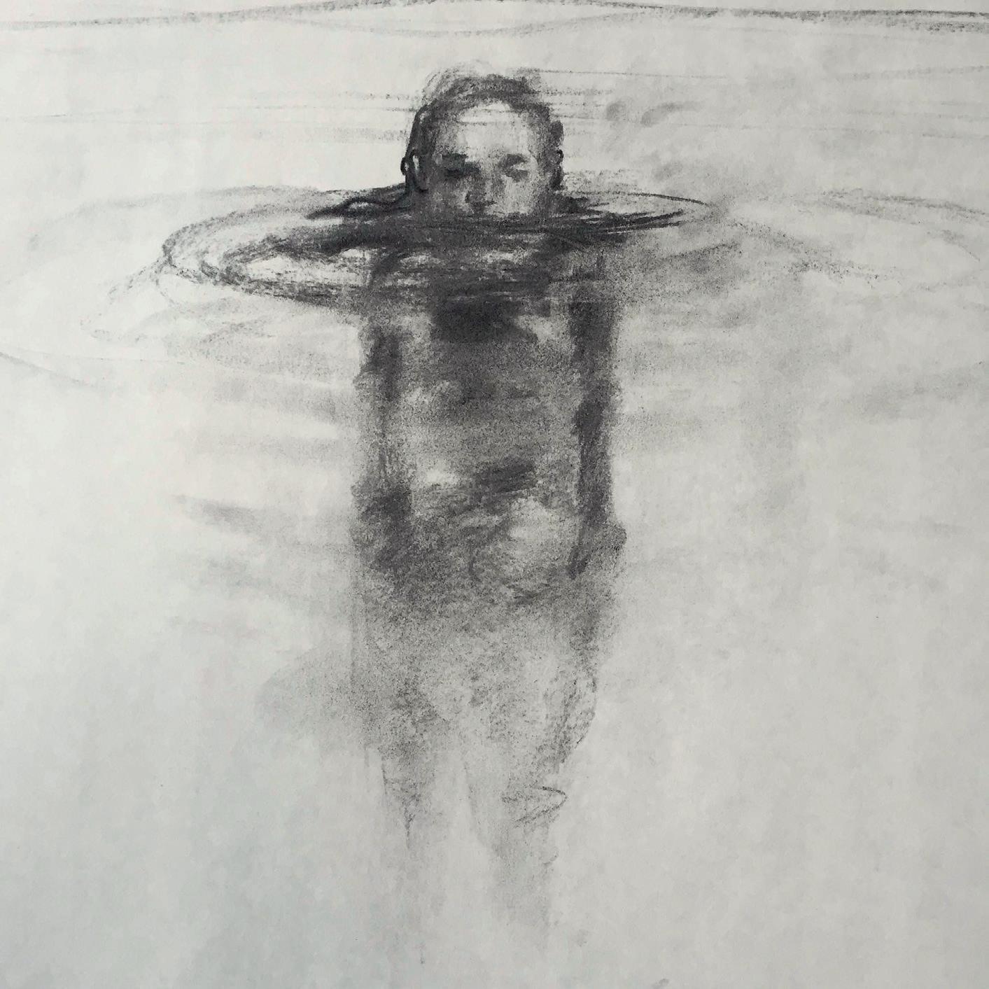 ”Badande” Kolteckning, höjd 30 cm