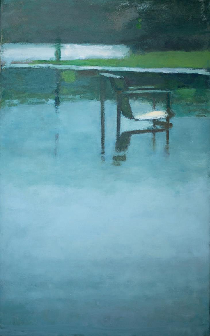 Birgitta Wikström är en produktiv konstnär med stor bredd och mångsidighet. Många av målningarna har motiv ur vardagen. Det kan vara leksaker, ljusets förvandling av ett fönster när det speglar sig i det, ett par badande, en kvarglömd solstol när semestersäsongen är slut. I Birgitta Wikströms konst blir den där övergivna stolen en sinnebild, ett memento för både ensamhet och längtan. Det handlar inte om att måla av ett motiv utan om att använda sidor av det i en egen berättelse. Den här exteriörbilden bär samma sorts förtätade uttryck och emotionella kraft som en hammershøjsk interiör. Hela bilden bär i sin skenbara enkelhet en komplex och känslodräktig stämning. Det finns ett lugn att vila sig i detta meditationsmåleri.