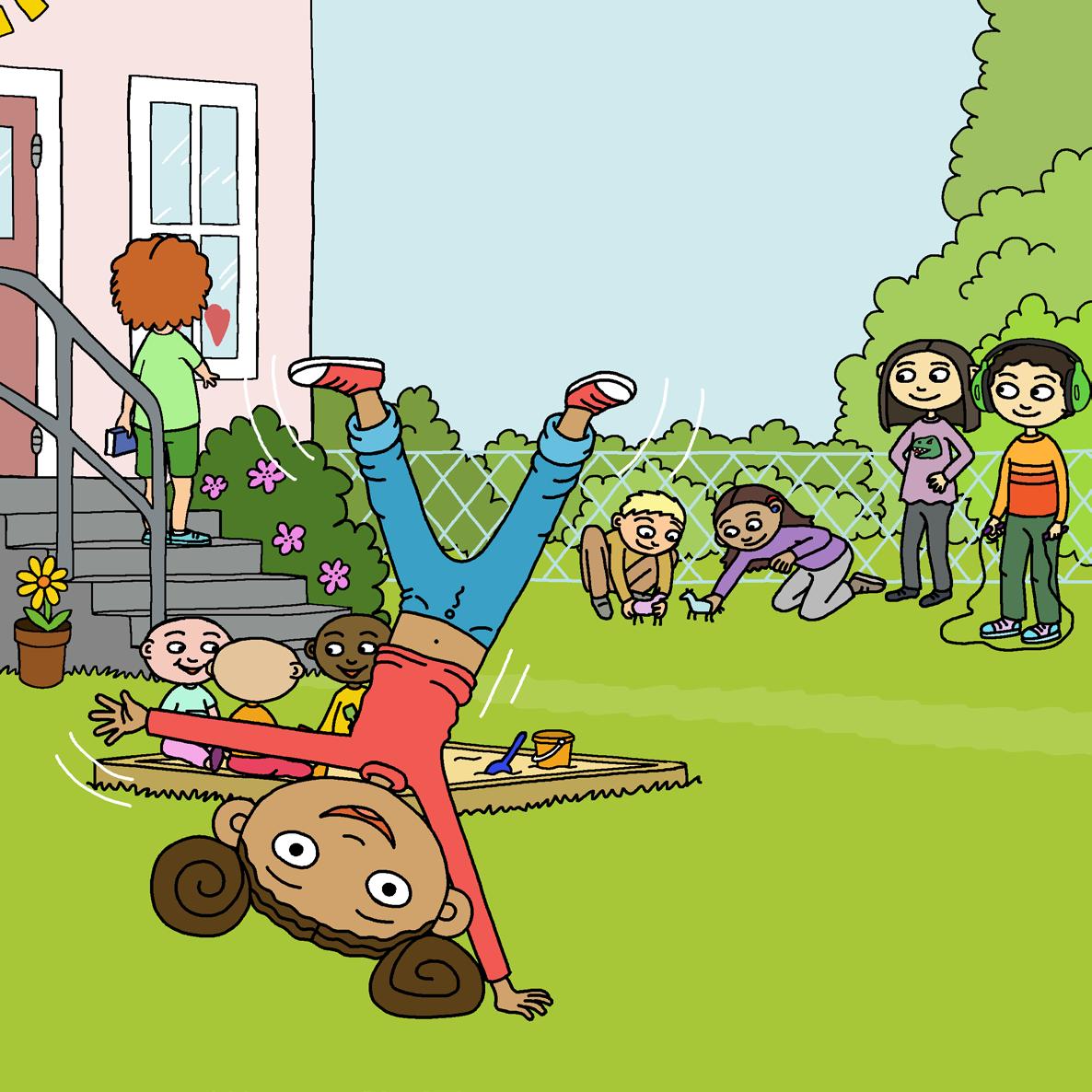 På rasten ställer sig Johanna upp och ner. Då ser hon världen från ett annat håll och idéerna liksom rasslar ner i huvudet.