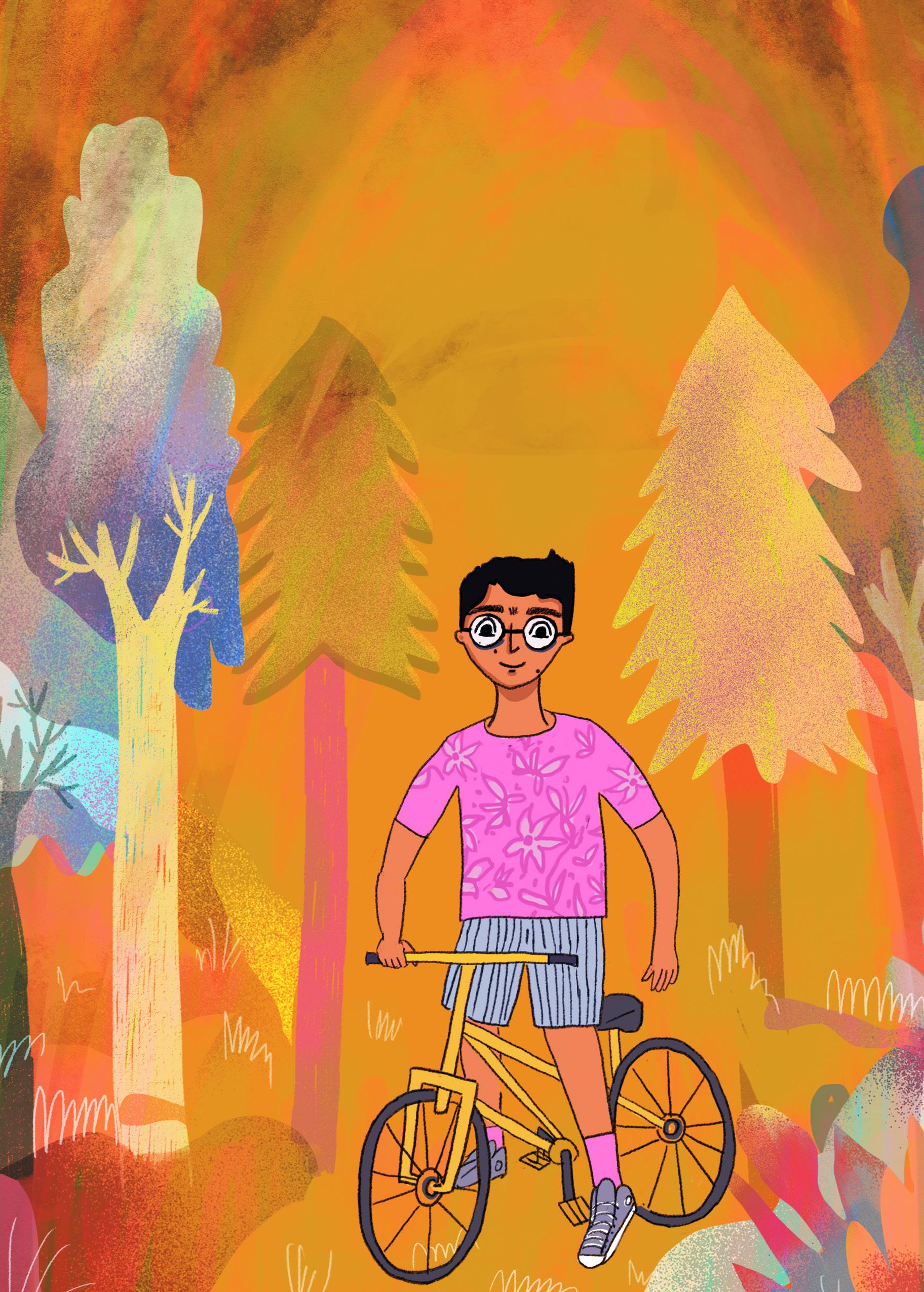 У вітальні стояв новий велосипед Аднана, який йому подарували на день народжен-