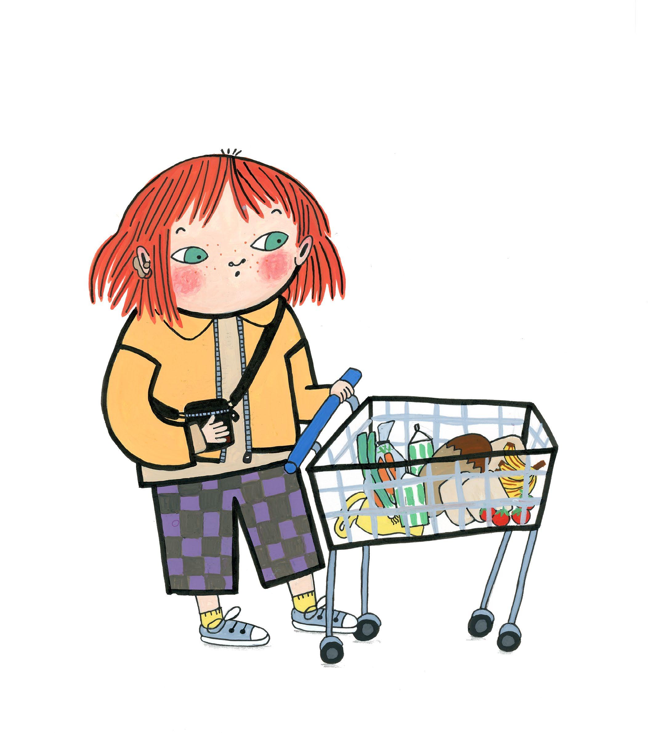 Boken kan också användas för att förbereda barnet för en situation som många kan känna igen sig i – nämligen att lämna ifrån sig det man vill köpa i kassan ...
