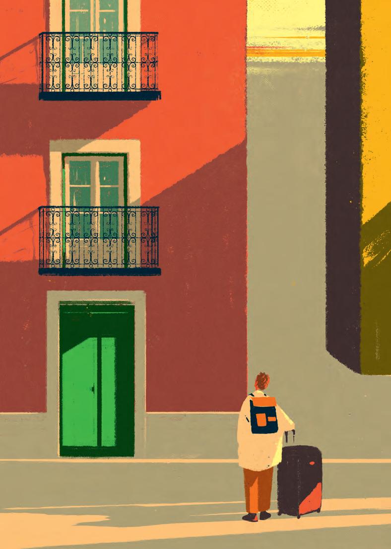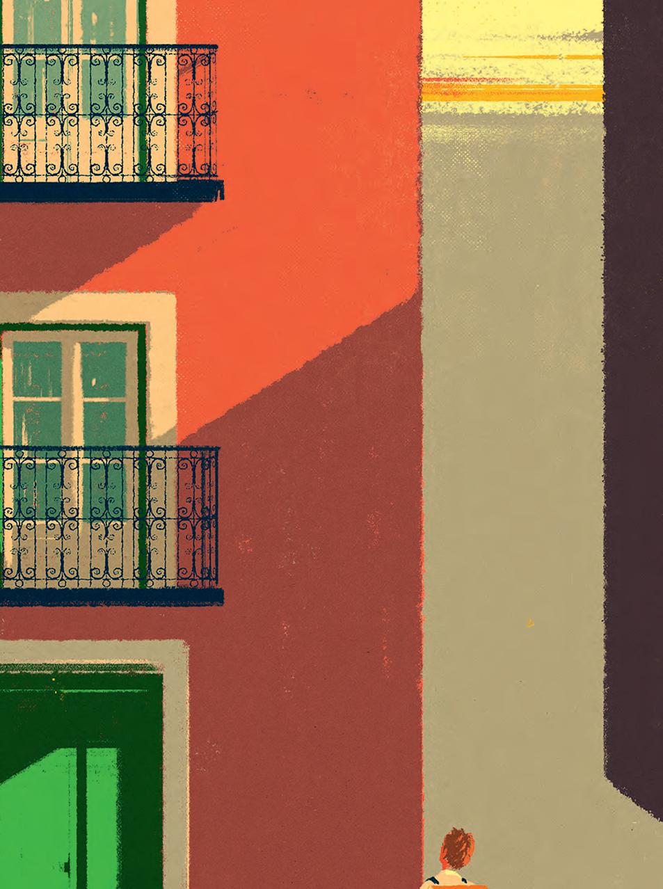 Nu står han här på en gata i Lissabon framför en stängd grön port.