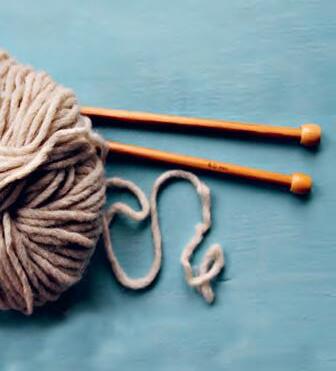 Det ska stå på garnets lapp att det passar stickor nummer 10. Vi använde i stället stickor nummer 20 för att få större maskor.