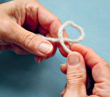 2. Dra ut ungefär en halv meter garn. Gör en cirkel av garnet nära nystanet. Garnet ska korsa sig som ett X.