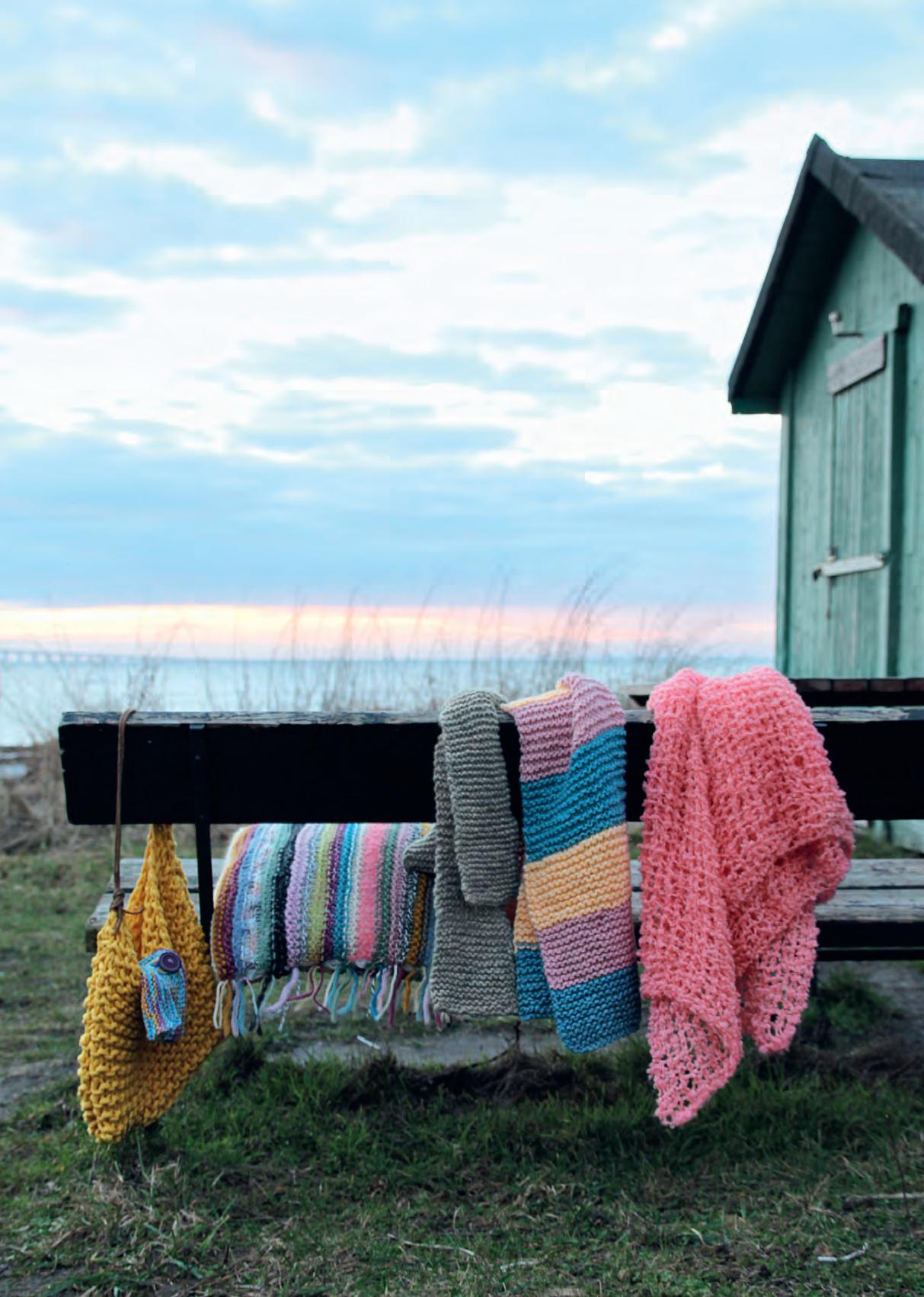 I bokens andra del finns sex fina saker du kan sticka. Det är halsdukar, fodral till kudde, sjal, pennskrin och väska.