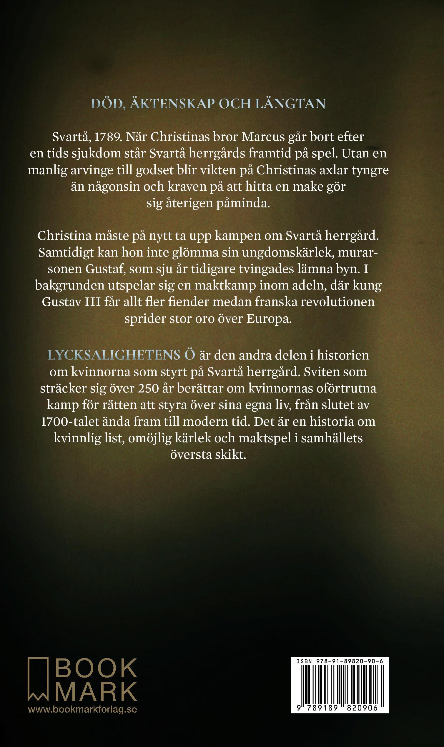 Marcus ryckte till och grimaserade. Christina strĂ€ckte sig efter hans magra hand som placerats ovanpĂ„ det matelasserade sidentĂ€cket. Han kĂ€ndes som en fĂ„gel, sĂ„ tunn och sĂ„ lĂ€tt. Inte ens tjugoett Ă„r fyllda skulle hans liv gĂ„ till Ă€nda. Medan han vid denna Ă„lder betraktades ha hela livet framför sig och fortfarande var för ung för giftermĂ„l rĂ€knades hon sjĂ€lv vid snart tjugotre som en förtorkad ungmö. Familjens hopp om att hitta en lĂ€mplig make hade givits upp för flera Ă„r sedan. Och Ă€ndĂ„ ⊠ĂndĂ„ vilade SvartĂ„s framtid mer Ă€n nĂ„gonsin pĂ„ hennes axlar. I samma takt som livet rann ur broderns kropp sjönk den insikten in i varje skrymsle och vrĂ„ av det som var Christinas vĂ€sen. Ett raspande andetag hördes frĂ„n Marcus och Christina visste, bara visste, att det var hans sista.