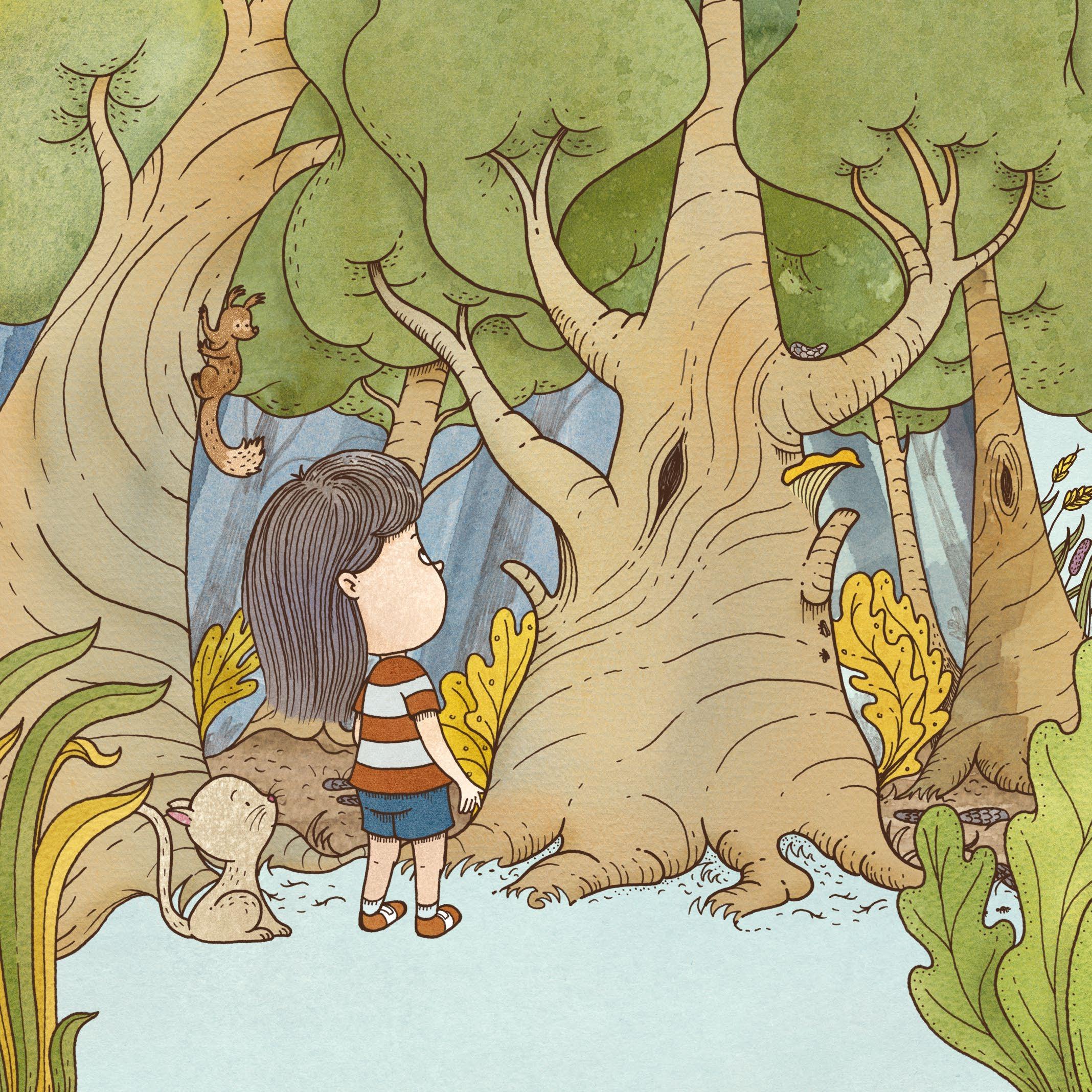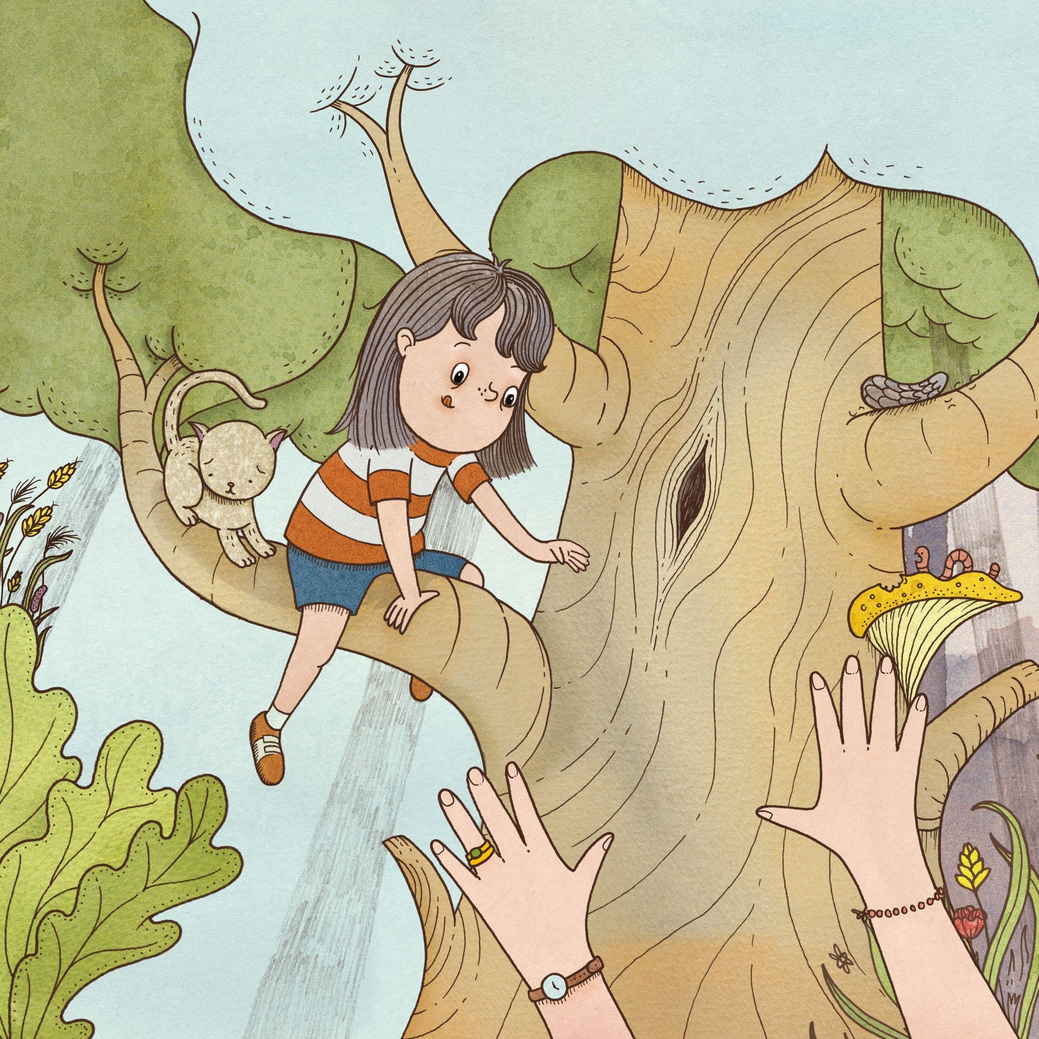 När vi var i skogen vågade jag för första gången klättra upp i det högsta trädet.
