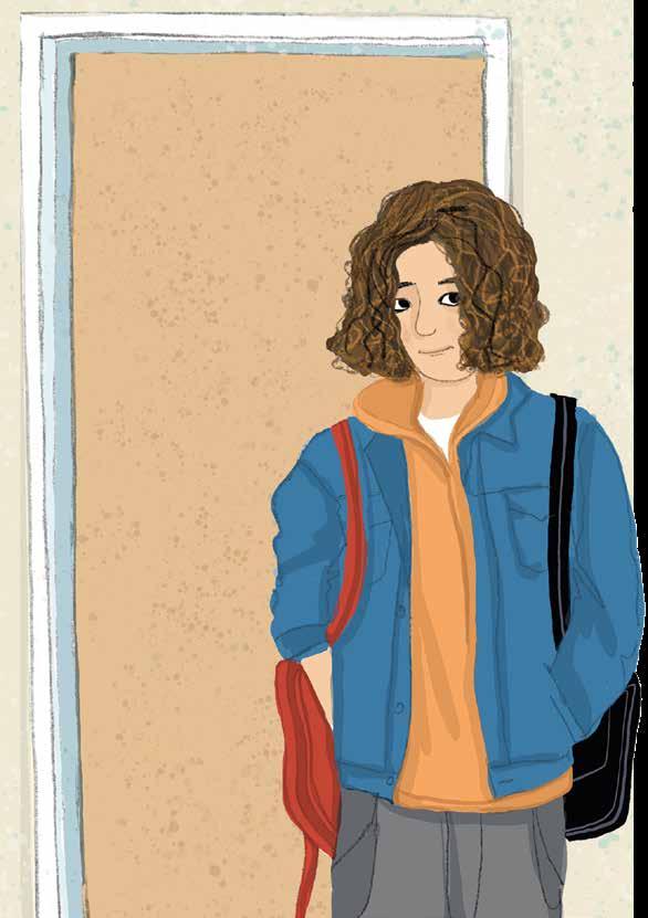Plötsligt står han bara där i dörröppningen. Han ser blyg ut, bakom stora lockar som döljer halva ansiktet. Han har en sliten jeansjacka och för stora byxor. Och två ryggsäckar.