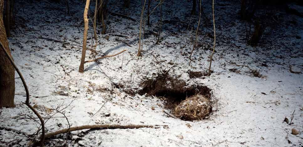 När den vita årstiden närmar sig sitt slut tenderar vinterns snötäcke att falla samman. I skogskanten, nere i marken bland stenbumlingar och trädrötter, har det slumrats och sovits i ett kvartal eller så. Kanske har de sömndruckna rört sig något därnere i underjorden men knappast varit ute på länge, möjligen under någon särskilt mild period. Nu tycks de ha vaknat på riktigt. Jordiga och leriga spårstämplar på den kvarvarande snön talar nu sitt tydliga språk. Här har det åter tassats ovan jord.